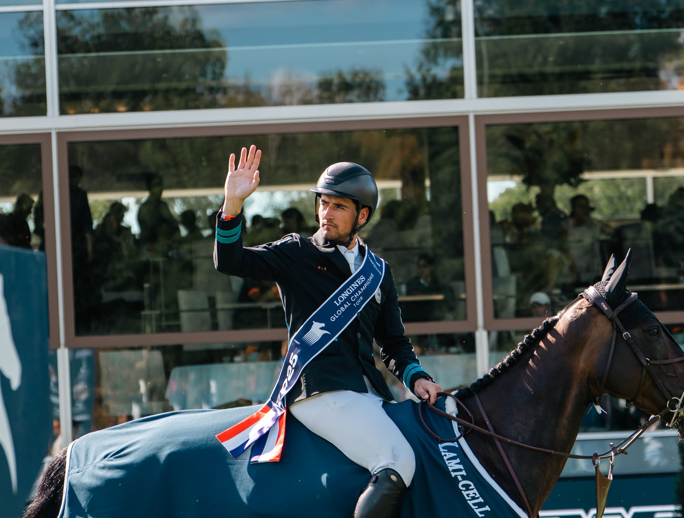Nicola and Katanga van het Dingeshof finished second on Sunday afternoon in the Longines Global Champions Tour Grand Prix of Valkenswaard. In a jump-off with only two riders, the victory went to Harrie Smolders and Monaco. Olivier finished tenth with Just Him.